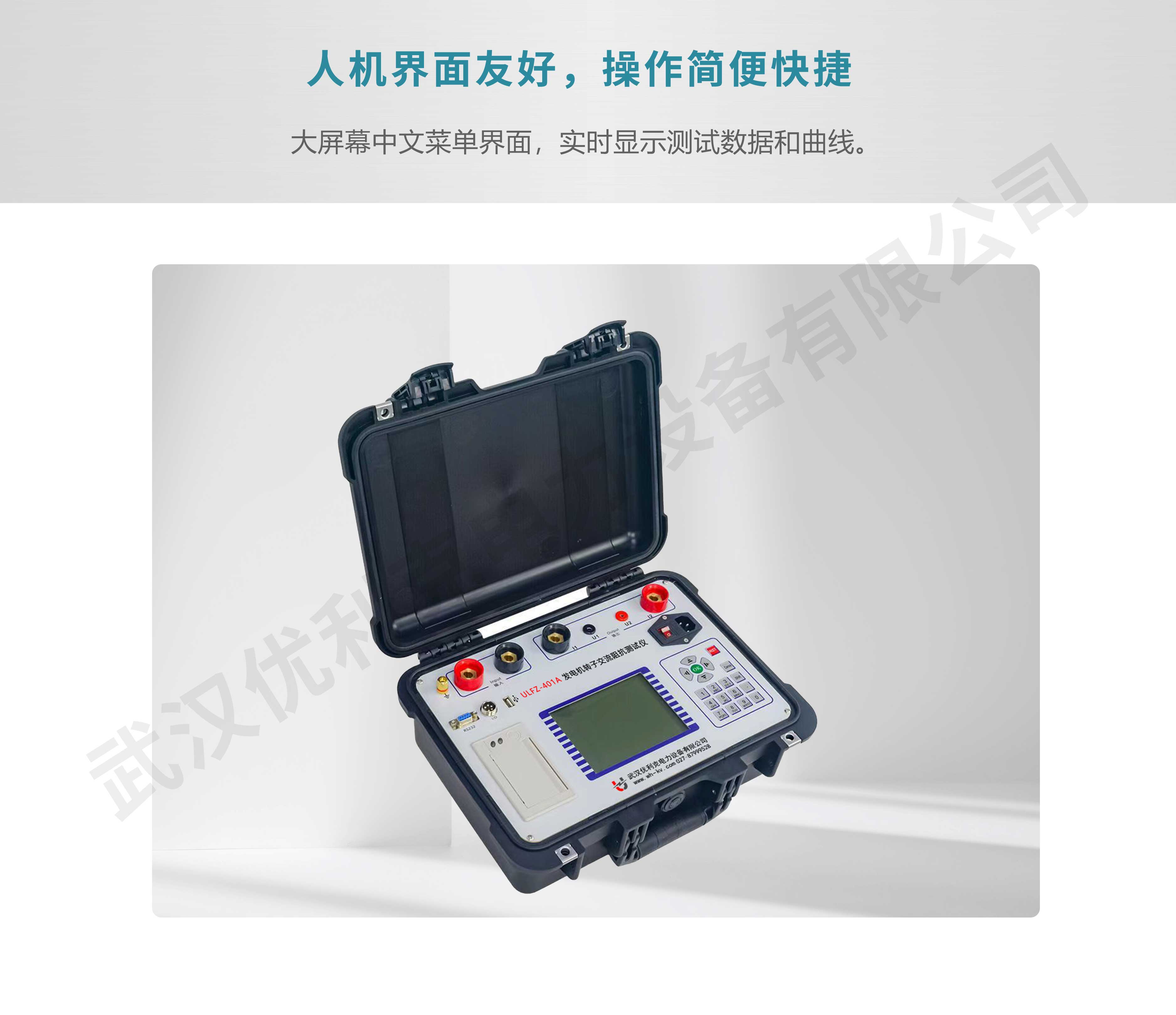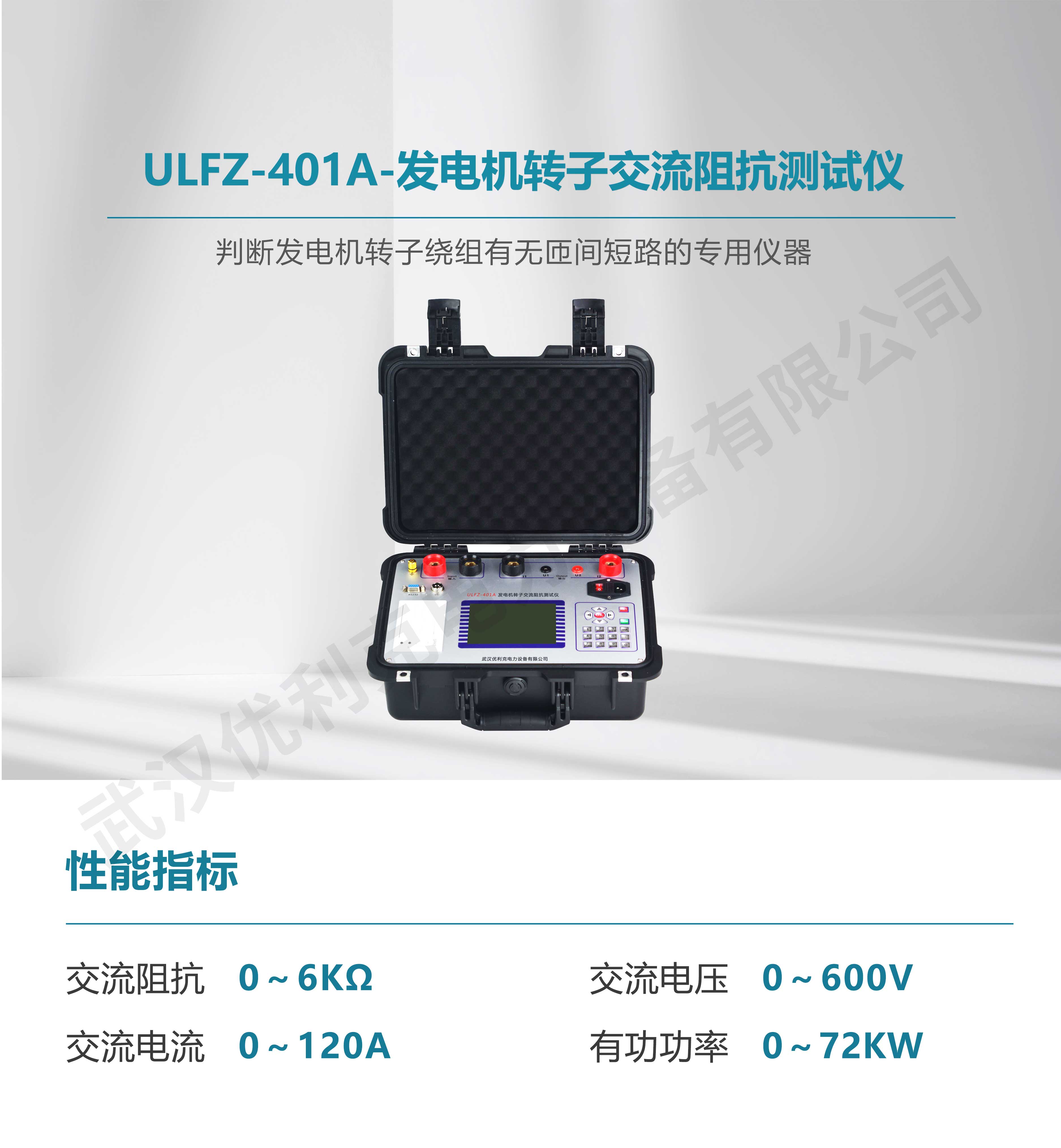 ULFZ-401A 發(fā)電機轉(zhuǎn)子交流阻抗測試儀是判斷發(fā)電機轉(zhuǎn)子繞組有無匝間短路的專用儀器,可以全自動、手動(單向或雙向)測量轉(zhuǎn)子繞組的電壓、電流、阻抗、功率、轉(zhuǎn)速、相位角等參數(shù)。