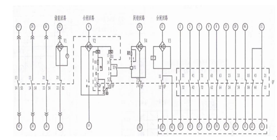 下面為VS1真空開關(guān)分合控制接線圖:合閘紅線接(4)、分閘綠線接(31),公共點(14)和(30)短接后接黑線。