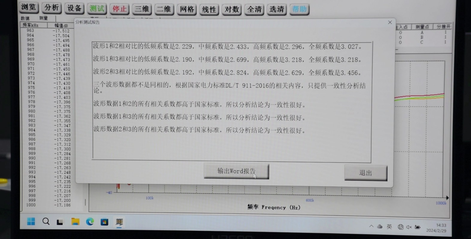 三相繞組間對比:將三相繞組的頻響曲線繪制在同一坐標(biāo)系中,對比其形狀和幅值。正常情況下,三相繞組的頻響曲線應(yīng)具有相似的
